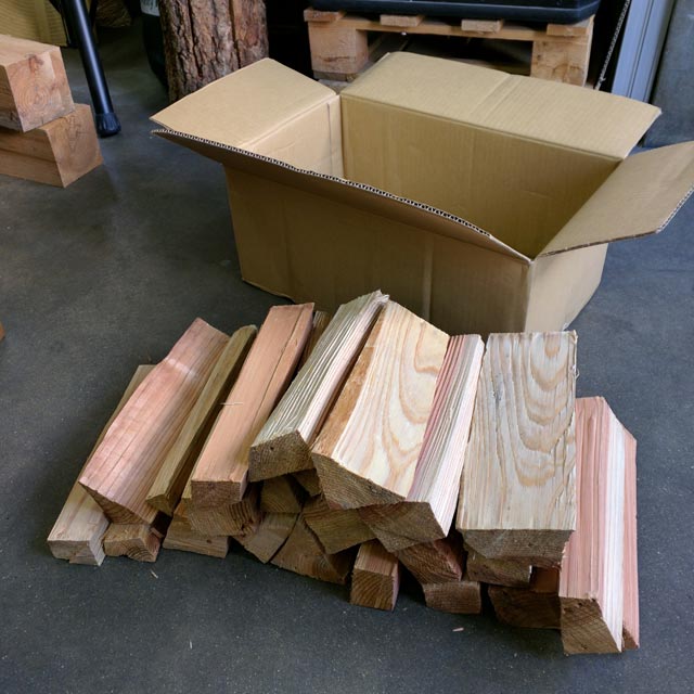 針葉樹のほうが燃えやすいので細めの針葉樹を使うと火おこしが楽になります。